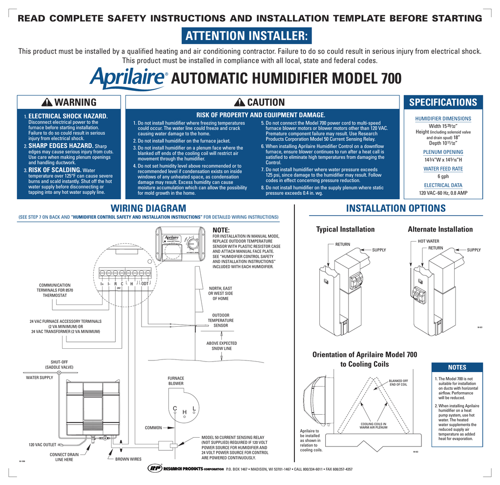 Back To Aprilaire 700 Humidifier Wiring Diagram