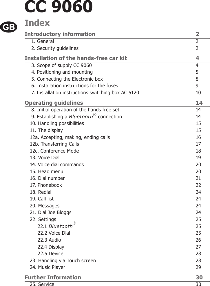 cc9060 bluetooth handsfree carkit user manual